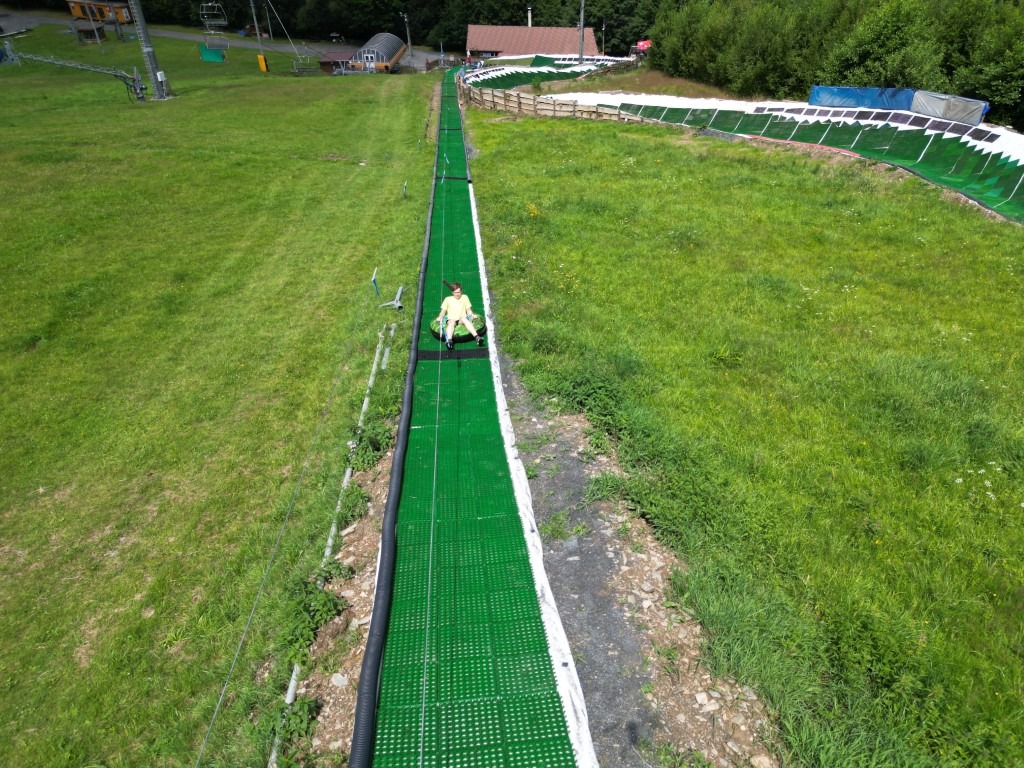 Užijte si jedinečnou adrenalinovou jízdu v nafukovacích kruzích. Projedete se dráhou s délkou přes 200 metrů. Na vrchol Vás vyveze lanovka a následně prosvištíte šesti zatáčkami. Povrch tubingové dráhy je vytvořen ze speciálního povrchu, který umožní bezpečnou, avšak adrenalinovou jízdu, která je vhodná pro všechny starší 6 let a lehčích než 80 kg.